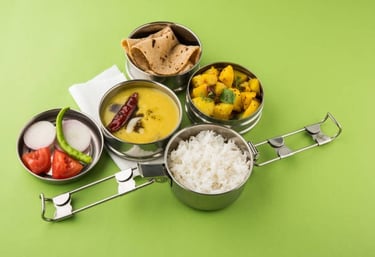 Perfect Everyday Meal-A wholesome combo with sabzi, dal, roti, rice, and salad — made fresh daily!